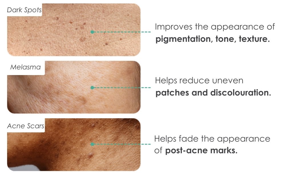 Most products use basic vitamins and strong acids for short-term results, but they don’t treat the real causes.