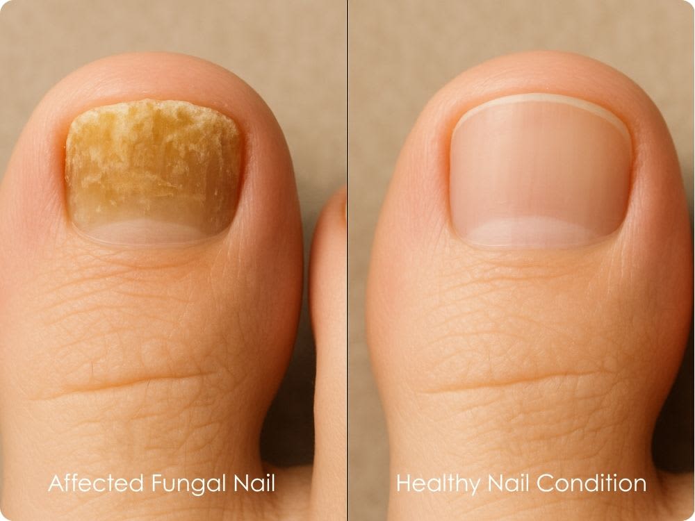 Fungal infections thrive in warm, moist environments — like feet trapped in socks and shoes all day. They cause thickened nails, irritated skin, and ongoing discomfort.